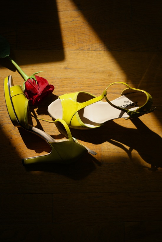 Mazette et calembredaines, j’avais complètement oublié que je possédais une paire de chaussures fluo – je vous les montrais portées sur un lit d’hôtel en 2009 – souvenez-vous… Parfois je suis tellement en avance sur mon temps que tout cela m’effraie.